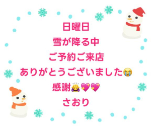 今日もすごく癒されました。いつも、一生懸命なさおりちゃんに感謝でいっぱいです。これからますます寒くなるので体に気をつけて頑張って下さい。また、お会いできる日を楽しみにしています。応援しています。